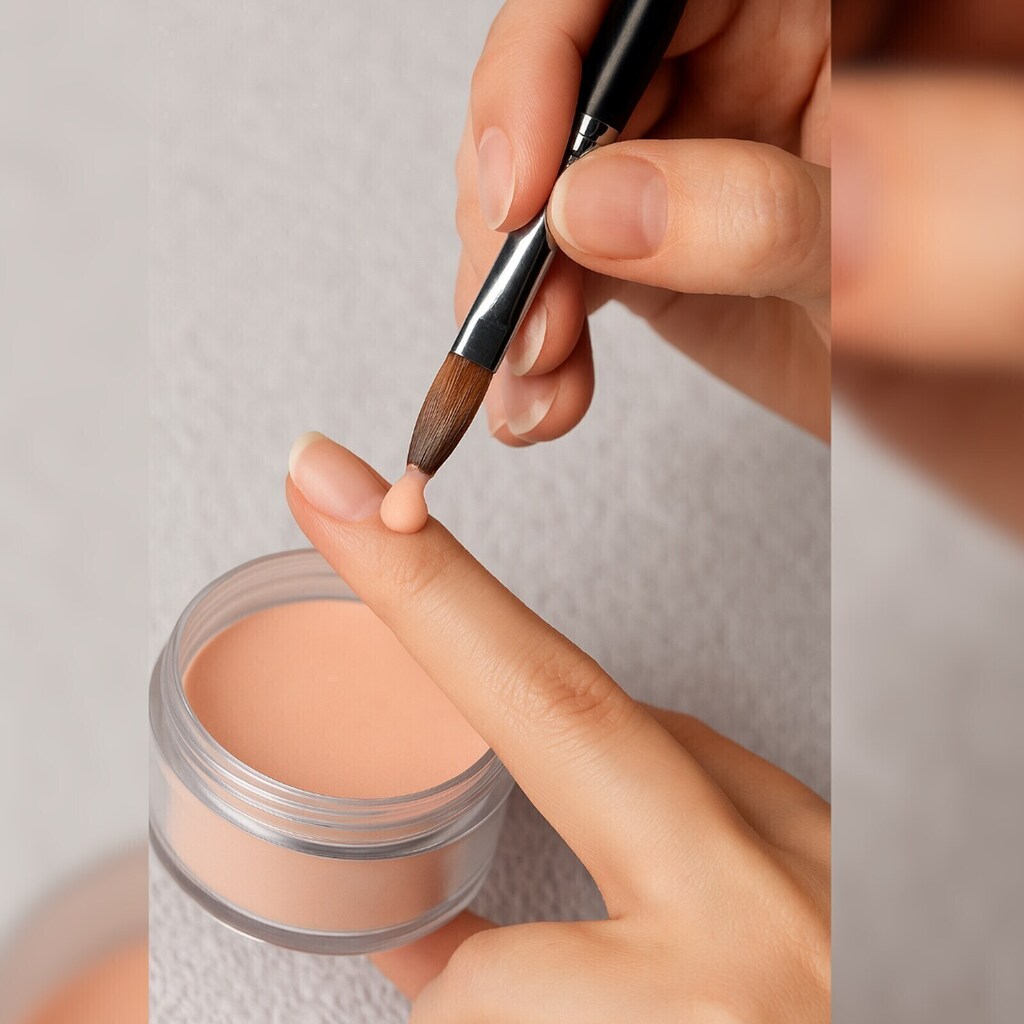 Toque o pincel no pó acrílico, formando uma pequena esfera.